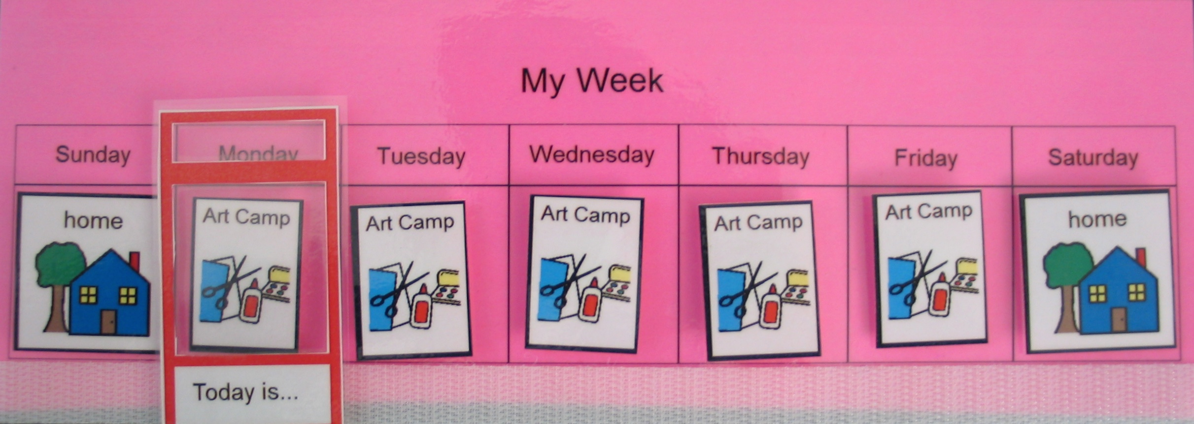 Visuals provide information for your child and can help alleviate some of the stress of not knowing what to expect. Their routine might change day-to-day at camp, so be sure to check in so you can create a visual schedule for each day.